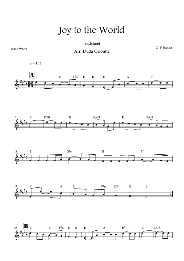 Joy to the World (E major - leadsheet - no lyrics) (arr. Duda Oriontte)
