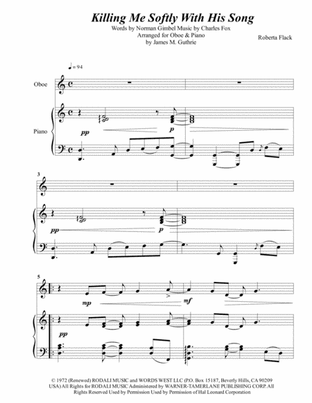 Killing Me Softly With His Song (arr. James M. Guthrie)