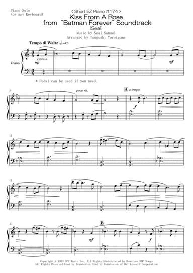 Choral Choir (SATB) - Level 3 - Digital Download SKU: A0.862699 By Seal. By Henry Olusegun Adeola Samuel. Arranged by Francois Monette. Contemporary,Pop. Octavo. 7 pages. Francois Monette #4762043. Published by Francois Monette (A0.862699). That arrangement of Seal's big success provides beautiful harmonies. Rhythmically pretty close to the original interpretation. For SSAATB. This product was created by a member of ArrangeMe, Hal Leonard's global self-publishing community of independent composers, arrangers, and songwriters. ArrangeMe allows for the publication of unique arrangements of popular titles and original compositions from a variety of voices and backgrounds. The length, difficulty, and retail pricing are determined solely by the discretion of the person who arranged or composed it. About Digital Downloads Digital Downloads are downloadable sheet music files that can be viewed directly on your computer, tablet or mobile device. Once you download your digital sheet music, you can view and print it at home, school, or anywhere you want to make music, and you don’t have to be connected to the internet. Just purchase, download and play! PLEASE NOTE: Your Digital Download will have a watermark at the bottom of each page that will include your name, purchase date and number of copies purchased. You are only authorized to print the number of copies that you have purchased. You may not digitally distribute or print more copies than purchased for use (i.e., you may not print or digitally distribute individual copies to friends or students).