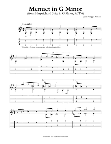 Guitar - Level 2 - Digital Download SKU: A0.692130 Composed by Jean-Philippe Rameau. Arranged by Mark Phillips. Baroque. Guitar Tab. 1 pages. A. J. Cornell Publications #6207929. Published by A. J. Cornell Publications (A0.692130). Jean-Philippe Rameau’s La Boiteuse (from Harpsichord Suite in D Major, RCT 3) for easy classical guitar solo. This product was created by a member of ArrangeMe, Hal Leonard’s global self-publishing community of independent composers, arrangers, and songwriters. ArrangeMe allows for the publication of unique arrangements of both popular titles and original compositions from a wide variety of voices and backgrounds. About Digital Downloads Digital Downloads are downloadable sheet music files that can be viewed directly on your computer, tablet or mobile device. Once you download your digital sheet music, you can view and print it at home, school, or anywhere you want to make music, and you don’t have to be connected to the internet. Just purchase, download and play! PLEASE NOTE: Your Digital Download will have a watermark at the bottom of each page that will include your name, purchase date and number of copies purchased. You are only authorized to print the number of copies that you have purchased. You may not digitally distribute or print more copies than purchased for use (i.e., you may not print or digitally distribute individual copies to friends or students).