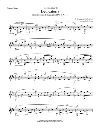 Solo Guitar - Level 4 - Digital Download SKU: A0.1501443 Composed by Aniceto Molina. Arranged by José Rene Duran Ventura. Traditional. Individual part. 3 pages. Rene Duran #1077383. Published by Rene Duran (A0.1501443). Esta arreglada para guitarra sola ,la cual expone el bajo, la armonia y la linea melodica de la pieza;siendo una caracteristica destacable que en el periodo B la guitarra trata de imitar a el acordeon. La estructura formal de la pieza es la seguiente: Introduccion-A-B-A2-B2-Para terminar con un a peqeuña coda que es el tema dde la introduccion. En A2 la seccion del coro se expone una octava abajo y en B2 se tratan las voces en distinta pocicion. This product was created by a member of ArrangeMe, Hal Leonard's global self-publishing community of independent composers, arrangers, and songwriters. ArrangeMe allows for the publication of unique arrangements of both popular titles and original compositions from a wide variety of voices and backgrounds. About Digital Downloads Digital Downloads are downloadable sheet music files that can be viewed directly on your computer, tablet or mobile device. Once you download your digital sheet music, you can view and print it at home, school, or anywhere you want to make music, and you don't have to be connected to the internet. Just purchase, download and play! PLEASE NOTE: Your Digital Download will have a watermark at the bottom of each page that will include your name, purchase date and number of copies purchased. You are only authorized to print the number of copies that you have purchased. You may not digitally distribute or print more copies than purchased for use (i.e., you may not print or digitally distribute individual copies to friends or students).