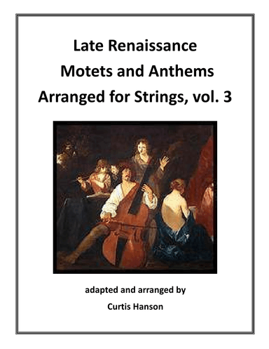 String Orchestra - Level 3 - Digital Download SKU: A0.719748 Composed by Many. Arranged by Curtis Hanson. A Cappella,Renaissance. Score and parts. 58 pages. Curtis Hanson #4839413. Published by Curtis Hanson (A0.719748). Hey string players and teachers, are you looking for something different to program or teach your students? This collection of pieces, suitable for beginning and experienced ensembles, may be what you’re looking for. For the choral musician, the a capella motets of the late Medieval and Renaissance periods, some well-known and others less so, comprise some of the richest and most beautiful works of choral literature. With the exception of the last piece, the works in this collection are all set for a standard string quartet of 2 violins, viola, and cello, instruments most closely able to mimic the inflections of the human voice. The intent of these arrangements is to enable the string musician to experience a genre perhaps less familiar, from the relatively simple yet sublime homophonic piece, to the varying degrees of rhythmic complexity of polyphonic works and their juxtaposed interplay of duple and triple rhythmic figures. With the purchase of this collection, permission is granted to photocopy parts as needed. Vocal breath marks (‘) above the staff are meant to serve as guides in phrasing. In keeping with the period, no dynamics are indicated, and tempo markings and slurs are only suggestions. The performer is free to interpret as desired.   The audio example is of the first several pieces in the collection. This product was created by a member of ArrangeMe, Hal Leonard's global self-publishing community of independent composers, arrangers, and songwriters. ArrangeMe allows for the publication of unique arrangements of popular titles and original compositions from a variety of voices and backgrounds. The length, difficulty, and retail pricing are determined solely by the discretion of the person who arranged or composed it. About Digital Downloads Digital Downloads are downloadable sheet music files that can be viewed directly on your computer, tablet or mobile device. Once you download your digital sheet music, you can view and print it at home, school, or anywhere you want to make music, and you don’t have to be connected to the internet. Just purchase, download and play! PLEASE NOTE: Your Digital Download will have a watermark at the bottom of each page that will include your name, purchase date and number of copies purchased. You are only authorized to print the number of copies that you have purchased. You may not digitally distribute or print more copies than purchased for use (i.e., you may not print or digitally distribute individual copies to friends or students).