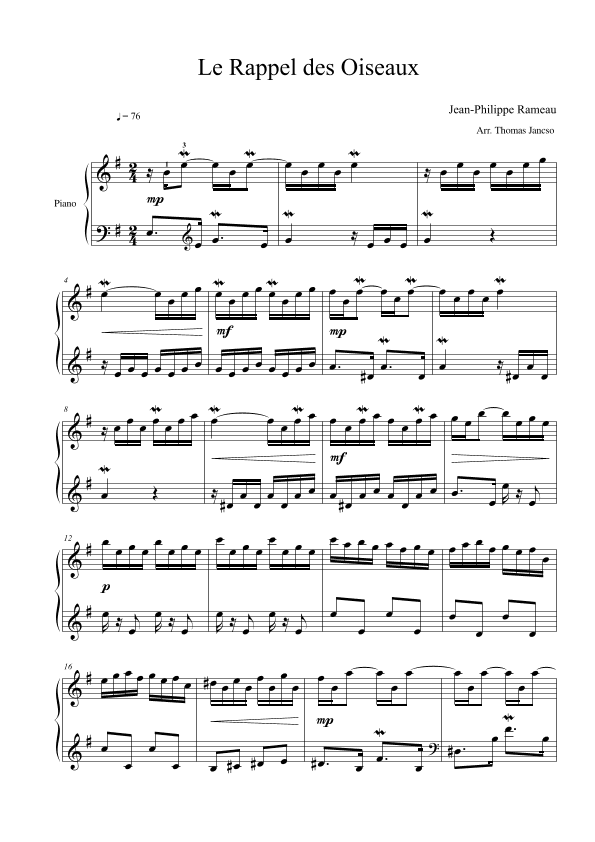 Le Rappel des oiseaux (arr. Thomas Jancso)