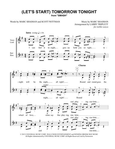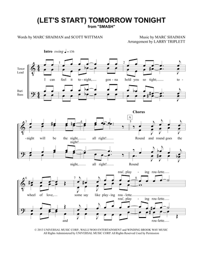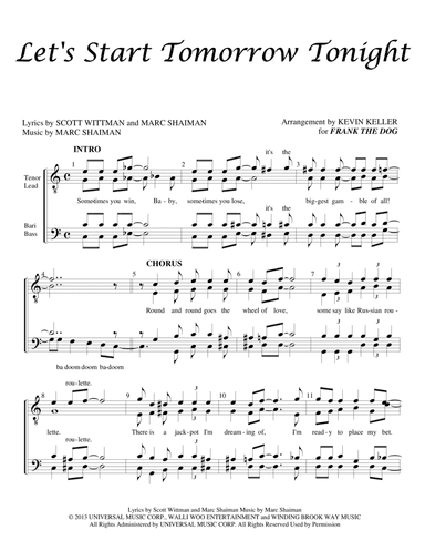 Choral Choir (SSAA) - Level 4 - Digital Download SKU: A0.816283 Composed by Marc Shaiman. Arranged by Kevin Keller. A Cappella,Barbershop,Contemporary. Octavo. 7 pages. Kevin Keller #6859173. Published by Kevin Keller (A0.816283). Women's barbershop arrangement (SSAA - melody in S2).  Suitable in competition in BHS and HI. This product was created by a member of ArrangeMe, Hal Leonard's global self-publishing community of independent composers, arrangers, and songwriters. ArrangeMe allows for the publication of unique arrangements of popular titles and original compositions from a variety of voices and backgrounds. The length, difficulty, and retail pricing are determined solely by the discretion of the person who arranged or composed it. About Digital Downloads Digital Downloads are downloadable sheet music files that can be viewed directly on your computer, tablet or mobile device. Once you download your digital sheet music, you can view and print it at home, school, or anywhere you want to make music, and you don’t have to be connected to the internet. Just purchase, download and play! PLEASE NOTE: Your Digital Download will have a watermark at the bottom of each page that will include your name, purchase date and number of copies purchased. You are only authorized to print the number of copies that you have purchased. You may not digitally distribute or print more copies than purchased for use (i.e., you may not print or digitally distribute individual copies to friends or students).