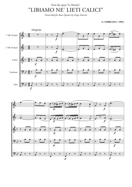"Libiamo ne' lieti calici" (Brindisi) for Brass Quintet (arr. Diego Marani)