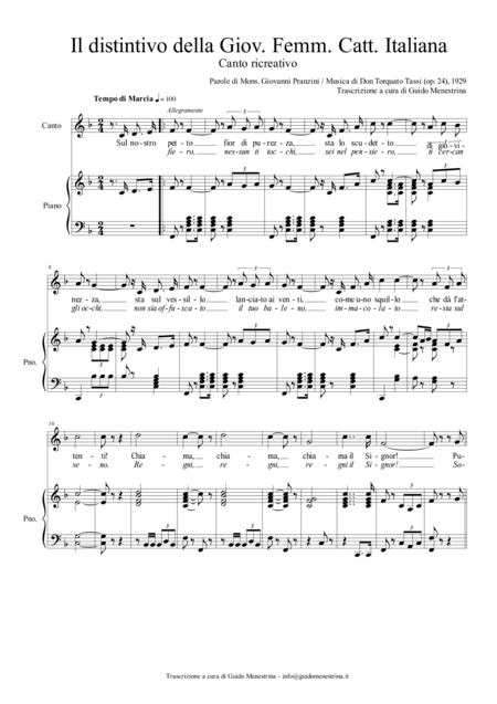 L'Inno del Distintivo della Gioventù Femminile Cattolica Italiana (1929) (arr. Guido Menestrina)