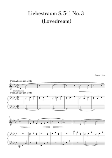 Piano,Violin - Digital Download SKU: A0.500679 Arranged by Lais Reis. Concert,Graduation,Romantic Period,Standards,World. 3 pages. Lais Reis #6369357. Published by Lais Reis (A0.500679). Liebestraum for violin and easy piano. This product was created by a member of ArrangeMe, Hal Leonard’s global self-publishing community of independent composers, arrangers, and songwriters. ArrangeMe allows for the publication of unique arrangements of both popular titles and original compositions from a wide variety of voices and backgrounds. About Digital Downloads Digital Downloads are downloadable sheet music files that can be viewed directly on your computer, tablet or mobile device. Once you download your digital sheet music, you can view and print it at home, school, or anywhere you want to make music, and you don’t have to be connected to the internet. Just purchase, download and play! PLEASE NOTE: Your Digital Download will have a watermark at the bottom of each page that will include your name, purchase date and number of copies purchased. You are only authorized to print the number of copies that you have purchased. You may not digitally distribute or print more copies than purchased for use (i.e., you may not print or digitally distribute individual copies to friends or students).