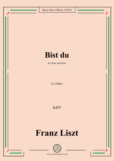 Piano,Vocal,Voice - Level 3 - Digital Download SKU: A0.763005 Composed by Franz Liszt. Arranged by OSM Press. Classical. Score. 8 pages. Open Cloud #370715. Published by Open Cloud (A0.763005). This product was created by a member of ArrangeMe, Hal Leonard's global self-publishing community of independent composers, arrangers, and songwriters. ArrangeMe allows for the publication of unique arrangements of popular titles and original compositions from a variety of voices and backgrounds. The length, difficulty, and retail pricing are determined solely by the discretion of the person who arranged or composed it. About Digital Downloads Digital Downloads are downloadable sheet music files that can be viewed directly on your computer, tablet or mobile device. Once you download your digital sheet music, you can view and print it at home, school, or anywhere you want to make music, and you don’t have to be connected to the internet. Just purchase, download and play! PLEASE NOTE: Your Digital Download will have a watermark at the bottom of each page that will include your name, purchase date and number of copies purchased. You are only authorized to print the number of copies that you have purchased. You may not digitally distribute or print more copies than purchased for use (i.e., you may not print or digitally distribute individual copies to friends or students).