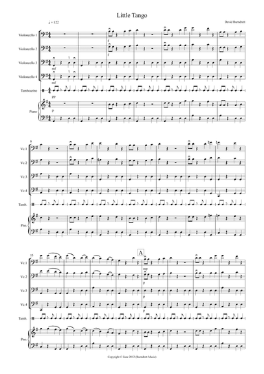 Cello Solo - Level 1 - Digital Download SKU: A0.554884 Composed by David Burndrett. Contemporary. Individual part. 11 pages. David Burndrett #238117. Published by David Burndrett (A0.554884). This piece is aimed at beginning cello quartet standard upwards. The cello three part is all open strings! I have added an easy optional piano part. I have also added an optional tambourine part. Download includes the score and all of the parts. This product was created by a member of ArrangeMe, Hal Leonard’s global self-publishing community of independent composers, arrangers, and songwriters. ArrangeMe allows for the publication of unique arrangements of both popular titles and original compositions from a wide variety of voices and backgrounds. About Digital Downloads Digital Downloads are downloadable sheet music files that can be viewed directly on your computer, tablet or mobile device. Once you download your digital sheet music, you can view and print it at home, school, or anywhere you want to make music, and you don’t have to be connected to the internet. Just purchase, download and play! PLEASE NOTE: Your Digital Download will have a watermark at the bottom of each page that will include your name, purchase date and number of copies purchased. You are only authorized to print the number of copies that you have purchased. You may not digitally distribute or print more copies than purchased for use (i.e., you may not print or digitally distribute individual copies to friends or students).