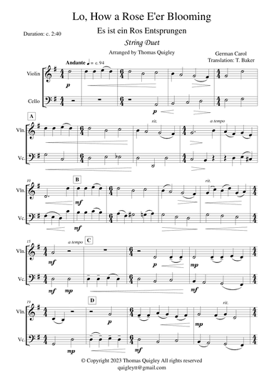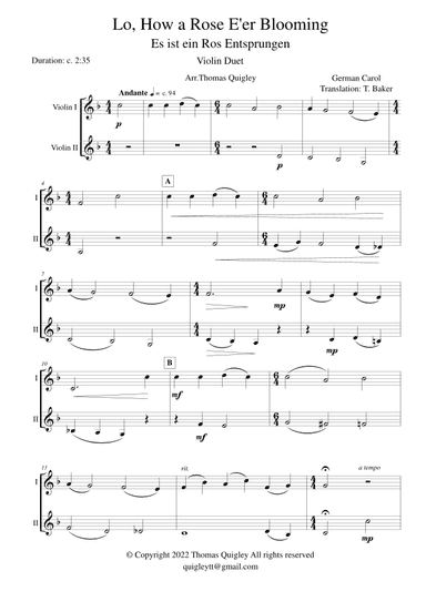 thomas quigley, german carol / translations by t. baker and h. krauth