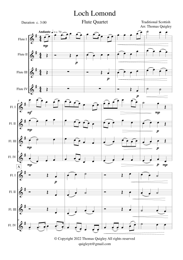 Loch Lomond (Flute Quartet) (arr. Thomas Quigley)