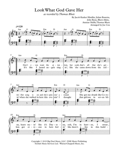 Digital Sheet Music for Look What God Gave Her by Jacob Hindlin, Julian Bunetta, John Ryan, Thomas Rhett, Ammar Malik, Rhett Atkins scored for Piano/Vocal/Chords; id:467461