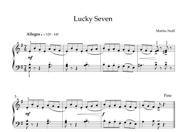 Piano Solo - Level 3 - Digital Download SKU: A0.1204719 Composed by Martin Neill. Contemporary. Score. 1 pages. Martin Neill #803150. Published by Martin Neill (A0.1204719). A great recital piece due to the exciting, driving 7/8 time signature. This is sure to impress! This product was created by a member of ArrangeMe, Hal Leonard's global self-publishing community of independent composers, arrangers, and songwriters. ArrangeMe allows for the publication of unique arrangements of popular titles and original compositions from a variety of voices and backgrounds. The length, difficulty, and retail pricing are determined solely by the discretion of the person who arranged or composed it. About Digital Downloads Digital Downloads are downloadable sheet music files that can be viewed directly on your computer, tablet or mobile device. Once you download your digital sheet music, you can view and print it at home, school, or anywhere you want to make music, and you don’t have to be connected to the internet. Just purchase, download and play! PLEASE NOTE: Your Digital Download will have a watermark at the bottom of each page that will include your name, purchase date and number of copies purchased. You are only authorized to print the number of copies that you have purchased. You may not digitally distribute or print more copies than purchased for use (i.e., you may not print or digitally distribute individual copies to friends or students).