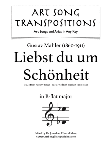 Piano,Vocal,Voice - Digital Download SKU: A0.539276 Composed by Gustav Mahler. Arranged by ArtSongTranspositions.com. Romantic Period. Score. 4 pages. AST Publications, LLC #5727027. Published by AST Publications, LLC (A0.539276). ⇨ PAY $0.00 with INSTITUTIONAL MEMBERSHIP✓ 10,000+ art songs and Baroque aria PDFs✓ Transpose sheet music to any key✓ Free for faculty, students, staff, and employees✓ Campus-wide access via IP authentication✓ Off-campus access via EZproxy or SAML This product was created by a member of ArrangeMe, Hal Leonard's global self-publishing community of independent composers, arrangers, and songwriters. ArrangeMe allows for the publication of unique arrangements of popular titles and original compositions from a variety of voices and backgrounds. The length, difficulty, and retail pricing are determined solely by the discretion of the person who arranged or composed it. About Digital Downloads Digital Downloads are downloadable sheet music files that can be viewed directly on your computer, tablet or mobile device. Once you download your digital sheet music, you can view and print it at home, school, or anywhere you want to make music, and you don’t have to be connected to the internet. Just purchase, download and play! PLEASE NOTE: Your Digital Download will have a watermark at the bottom of each page that will include your name, purchase date and number of copies purchased. You are only authorized to print the number of copies that you have purchased. You may not digitally distribute or print more copies than purchased for use (i.e., you may not print or digitally distribute individual copies to friends or students).