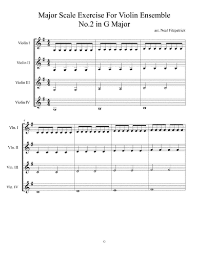 String Quartet String Quartet,Violin - Level 1 - Digital Download SKU: A0.955340 Composed by Neal Fitzpatrick. Arranged by Neal Fitzpatrick. Instructional. Score and parts. 2 pages. Neal Fitzpatrick Editions #5041979. Published by Neal Fitzpatrick Editions (A0.955340). This work is in G major is No.2 of a set Major scale exercises in all 12 major keys. The focus of the study is varied divisions of the beat using whole notes, half notes, quarter notes and eighth notes. The exercise will also help understand articulation, tone and dynamics. A steady cycle through all 12 keys will help further an understanding of keys, key signatures and harmonic relationships. This product was created by a member of ArrangeMe, Hal Leonard's global self-publishing community of independent composers, arrangers, and songwriters. ArrangeMe allows for the publication of unique arrangements of popular titles and original compositions from a variety of voices and backgrounds. The length, difficulty, and retail pricing are determined solely by the discretion of the person who arranged or composed it. About Digital Downloads Digital Downloads are downloadable sheet music files that can be viewed directly on your computer, tablet or mobile device. Once you download your digital sheet music, you can view and print it at home, school, or anywhere you want to make music, and you don’t have to be connected to the internet. Just purchase, download and play! PLEASE NOTE: Your Digital Download will have a watermark at the bottom of each page that will include your name, purchase date and number of copies purchased. You are only authorized to print the number of copies that you have purchased. You may not digitally distribute or print more copies than purchased for use (i.e., you may not print or digitally distribute individual copies to friends or students).