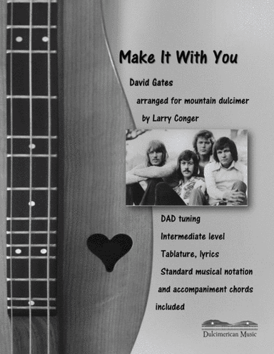 Digital sheet music for voice, piano or guitarNOTE: chords, lead sheet indications and lyrics may be included (please, check the first page above before to buy this item to see what's included)Publisher: Hal LeonardContributors to this music title:David Gates (writer)This item includes: PDF (digital sheet music to download and print), Interactive Sheet Music (for online playback, transposition and printing). You can transpose this music in any key.Instrumentation:voice, piano or guitarSkill Level:intermediateGenre:country, folk, love, pop, wedding, festivalPages:4