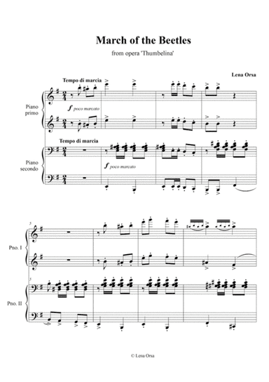 B-Flat Trumpet,Instrumental Duet,Oboe - Level 4 - Digital Download SKU: A0.1258284 By Jake Rogus. By Jake Rogus. 21st Century,Chamber,Comedy,March. 5 pages. Jake Rogus #851532. Published by Jake Rogus (A0.1258284). March of the Beetles is a silly piece for oboe and trumpet that depicts beetles marching on the ground. This product was created by a member of ArrangeMe, Hal Leonard's global self-publishing community of independent composers, arrangers, and songwriters. ArrangeMe allows for the publication of unique arrangements of popular titles and original compositions from a variety of voices and backgrounds. The length, difficulty, and retail pricing are determined solely by the discretion of the person who arranged or composed it. About Digital Downloads Digital Downloads are downloadable sheet music files that can be viewed directly on your computer, tablet or mobile device. Once you download your digital sheet music, you can view and print it at home, school, or anywhere you want to make music, and you don’t have to be connected to the internet. Just purchase, download and play! PLEASE NOTE: Your Digital Download will have a watermark at the bottom of each page that will include your name, purchase date and number of copies purchased. You are only authorized to print the number of copies that you have purchased. You may not digitally distribute or print more copies than purchased for use (i.e., you may not print or digitally distribute individual copies to friends or students).