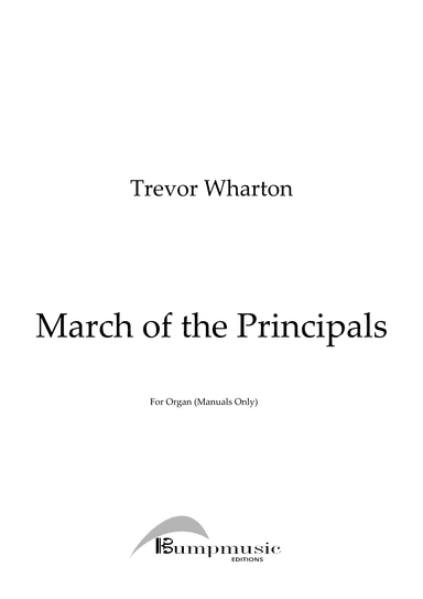 Organ - Level 2 - Digital Download SKU: A0.1220400 Composed by Trevor Wharton. Contemporary,March. Score. 3 pages. Bumpmusic Editions #816734. Published by Bumpmusic Editions (A0.1220400). A short processional piece for Organ (Manuals Only). This product was created by a member of ArrangeMe, Hal Leonard’s global self-publishing community of independent composers, arrangers, and songwriters. ArrangeMe allows for the publication of unique arrangements of both popular titles and original compositions from a wide variety of voices and backgrounds. About Digital Downloads Digital Downloads are downloadable sheet music files that can be viewed directly on your computer, tablet or mobile device. Once you download your digital sheet music, you can view and print it at home, school, or anywhere you want to make music, and you don’t have to be connected to the internet. Just purchase, download and play! PLEASE NOTE: Your Digital Download will have a watermark at the bottom of each page that will include your name, purchase date and number of copies purchased. You are only authorized to print the number of copies that you have purchased. You may not digitally distribute or print more copies than purchased for use (i.e., you may not print or digitally distribute individual copies to friends or students).