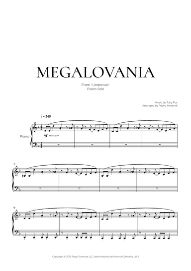 Clarinet Quartet,Woodwind Ensemble - Level 3 - Digital Download SKU: A0.1181848 Composed by Toby Fox. Arranged by César Madeira. Chamber,Children,Multicultural,Pop,Video Game,World. 13 pages. Sheet Music To Play Editions #781599. Published by Sheet Music To Play Editions (A0.1181848). Megalovania from Undertale. Arrangement for Bb Clarinet Quartet - Bb Clarinet 1, 2, 3, and Bb Bass Clarinet. With Full Score and Individual Parts. Enjoy it!For Tutorials, Play Alongs or request New Arrangements, visit the YouTube Channel: Sheet Music To Play This product was created by a member of ArrangeMe, Hal Leonard’s global self-publishing community of independent composers, arrangers, and songwriters. ArrangeMe allows for the publication of unique arrangements of both popular titles and original compositions from a wide variety of voices and backgrounds. About Digital Downloads Digital Downloads are downloadable sheet music files that can be viewed directly on your computer, tablet or mobile device. Once you download your digital sheet music, you can view and print it at home, school, or anywhere you want to make music, and you don’t have to be connected to the internet. Just purchase, download and play! PLEASE NOTE: Your Digital Download will have a watermark at the bottom of each page that will include your name, purchase date and number of copies purchased. You are only authorized to print the number of copies that you have purchased. You may not digitally distribute or print more copies than purchased for use (i.e., you may not print or digitally distribute individual copies to friends or students).