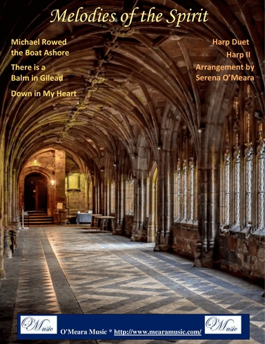 Instrumental Duet,Lever Harp - Level 3 - Digital Download SKU: A0.803903 Composed by Afro-American Songs and George Willis Cooke. Arranged by Serena O’Meara. Folk,Praise & Worship,Sacred,Spiritual,Traditional. 15 pages. O'Meara Music #5361611. Published by O'Meara Music (A0.803903). Both Michael Row the Boat Ashore and There is a Balm in Gilead are Afro-American Spirituals. Charles Pickard Ware wrote down Michael Row the Boat Ashore after listening to slaves sing it as they worked on the plantations or rowed across water. The words ask Archangel Michael for help. There is a Balm in Gilead comes from both the Old and New Testaments. Unitarian Minister, George Willis Cooke wrote a song in the later 1800’s that has become a campfire mainstay. I chose to list it as Down in My Heart. It’s also known as I’ve Got the Joy, I’ve Got that Joy, Joy, Joy and Joy, Joy, Joy. This arrangement is playable on either Lever or Pedal Harps. Dynamics are clearly marked. You will receive the Score, Harp I and Harp II This product was created by a member of ArrangeMe, Hal Leonard's global self-publishing community of independent composers, arrangers, and songwriters. ArrangeMe allows for the publication of unique arrangements of popular titles and original compositions from a variety of voices and backgrounds. The length, difficulty, and retail pricing are determined solely by the discretion of the person who arranged or composed it. About Digital Downloads Digital Downloads are downloadable sheet music files that can be viewed directly on your computer, tablet or mobile device. Once you download your digital sheet music, you can view and print it at home, school, or anywhere you want to make music, and you don’t have to be connected to the internet. Just purchase, download and play! PLEASE NOTE: Your Digital Download will have a watermark at the bottom of each page that will include your name, purchase date and number of copies purchased. You are only authorized to print the number of copies that you have purchased. You may not digitally distribute or print more copies than purchased for use (i.e., you may not print or digitally distribute individual copies to friends or students).