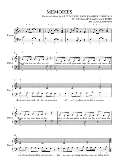 String Quartet String Quartet - Level 2 - Digital Download SKU: A0.798089 By Maroon 5. By Adam Levine, Jacob Hindlin, Jacob Kasher Hindlin, Jon Bellion, Michael Pollack, Stefan Johnson, and Vincent Ford. Arranged by Inacio Saldanha. Pop,Rock. Score and parts. 15 pages. Inacio Saldanha #5034285. Published by Inacio Saldanha (A0.798089). "Memories" is a song by American pop rock band Maroon 5. It was released by 222 Records and Interscope Records on September 20, 2019, as the lead single from their upcoming seventh studio album.The song was produced by lead vocalist Adam Levine and production team The Monsters and the Strangerz, and written by Levine, Stefan Johnson, Jordan Johnson, Michael Pollack, Jacob Kasher Hindlin, Jon Bellion, and Vincent Ford. The song peaked at number two on the US Billboard Hot 100 chart.Arranged for String Quartet. Key of B. Early Intermediate This product was created by a member of ArrangeMe, Hal Leonard's global self-publishing community of independent composers, arrangers, and songwriters. ArrangeMe allows for the publication of unique arrangements of popular titles and original compositions from a variety of voices and backgrounds. The length, difficulty, and retail pricing are determined solely by the discretion of the person who arranged or composed it. About Digital Downloads Digital Downloads are downloadable sheet music files that can be viewed directly on your computer, tablet or mobile device. Once you download your digital sheet music, you can view and print it at home, school, or anywhere you want to make music, and you don’t have to be connected to the internet. Just purchase, download and play! PLEASE NOTE: Your Digital Download will have a watermark at the bottom of each page that will include your name, purchase date and number of copies purchased. You are only authorized to print the number of copies that you have purchased. You may not digitally distribute or print more copies than purchased for use (i.e., you may not print or digitally distribute individual copies to friends or students).