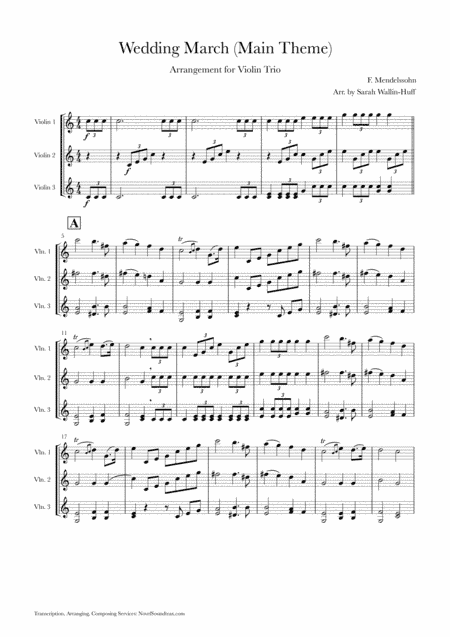 Mendelssohn Wedding March (Main Theme) for Three Violins (arr. Sarah Wallin Huff)