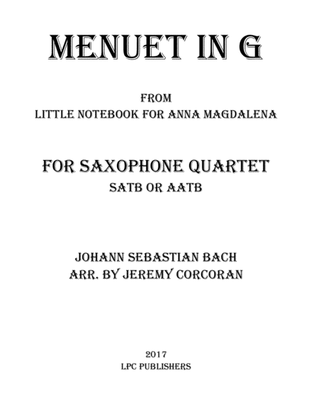 Menuet in G for Saxophone Quartet (SATB or AATB) (arr. Jeremy Corcoran)