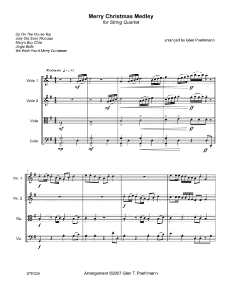 MERRY CHRISTMAS MEDLEY - STRING QUARTET (or 3 Violins & Cello) - 5 carol medley (arr. Glen Poehlmann)