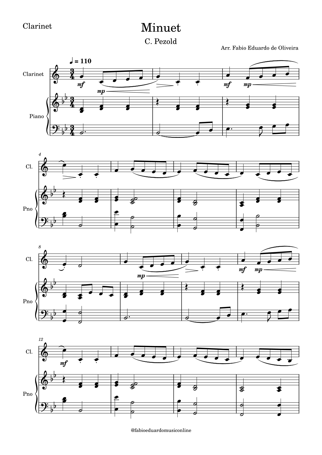 Minuet - Pezold (Bach) + FREE Playback + PDF Solo and Piano Parts (arr. Fabio Eduardo de Oliveira)