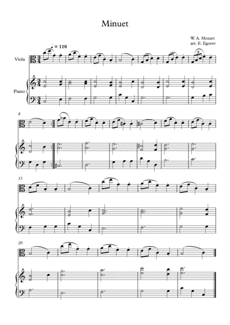 Minuet (In F Major), Wolfgang Amadeus Mozart, For Viola & Piano (arr. Eugene Egorov)