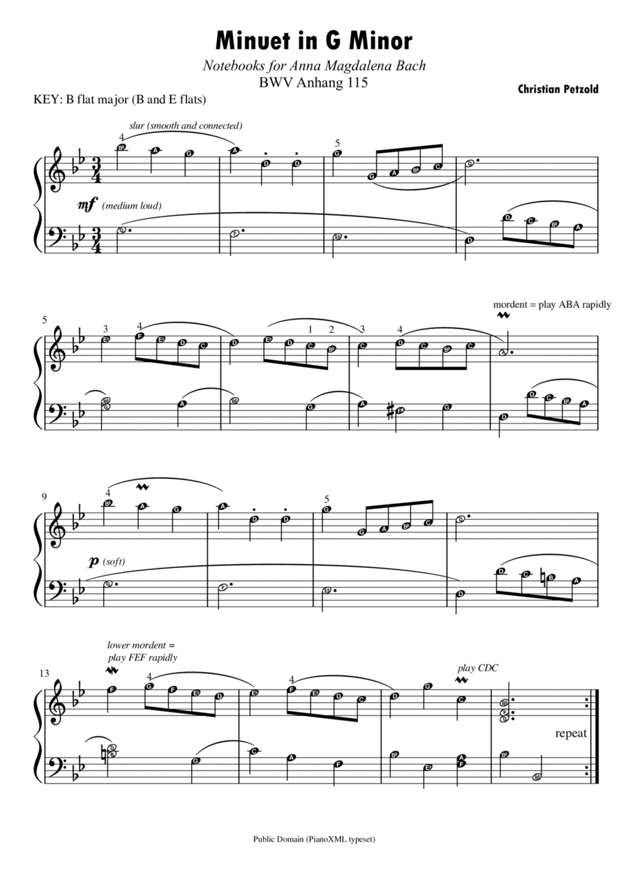 Minuet in G Minor by J. S. Bach | Piano Solo Baroque Grade 3 with note names and terms (arr. Published Harmony Valarie)