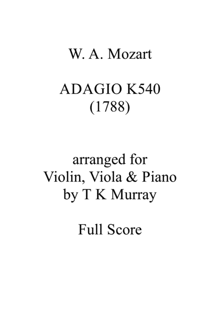 Mozart - Adagio in B minor K 540 - Violin, Viola & Piano (arr. Tim TK Murray)
