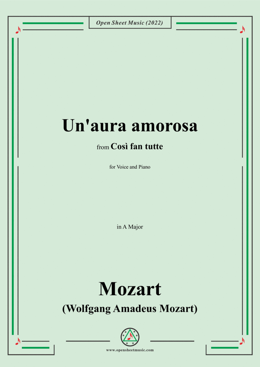 Mozart-Un'aura amorosa,in A Major,from 'Così fan tutte,K.588',for Voice and Piano (arr. Open Cloud)