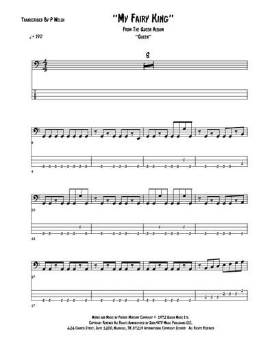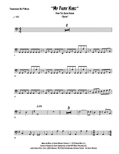 Bass Guitar,Instrumental Solo - Level 3 - Digital Download SKU: A0.838255 By Queen. By Freddie Mercury. Arranged by P Welsh. Rock. Individual part. 4 pages. Accubass #5718635. Published by Accubass (A0.838255). John Deacon's bassline in full. This product was created by a member of ArrangeMe, Hal Leonard's global self-publishing community of independent composers, arrangers, and songwriters. ArrangeMe allows for the publication of unique arrangements of popular titles and original compositions from a variety of voices and backgrounds. The length, difficulty, and retail pricing are determined solely by the discretion of the person who arranged or composed it. About Digital Downloads Digital Downloads are downloadable sheet music files that can be viewed directly on your computer, tablet or mobile device. Once you download your digital sheet music, you can view and print it at home, school, or anywhere you want to make music, and you don’t have to be connected to the internet. Just purchase, download and play! PLEASE NOTE: Your Digital Download will have a watermark at the bottom of each page that will include your name, purchase date and number of copies purchased. You are only authorized to print the number of copies that you have purchased. You may not digitally distribute or print more copies than purchased for use (i.e., you may not print or digitally distribute individual copies to friends or students).
