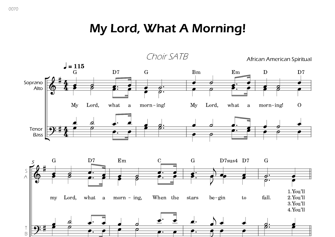 My Lord, What A Morning - Choir SATB - W/Chords (arr. César Madeira)