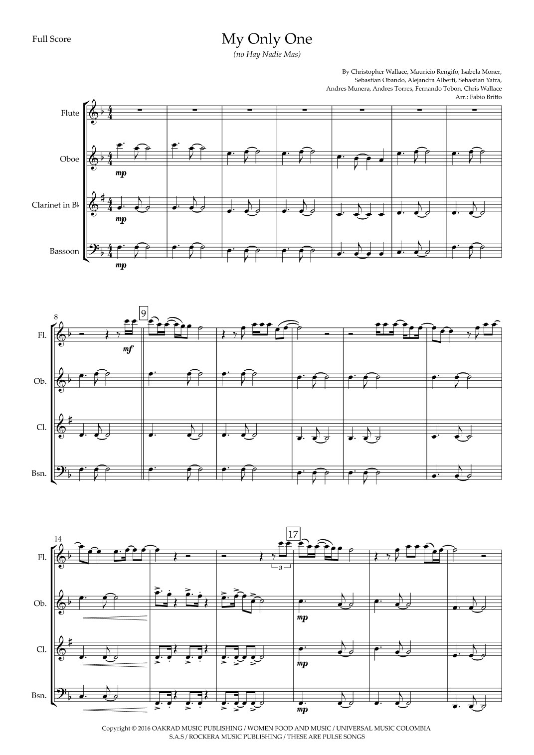 My Only One (no Hay Nadie Mas) (arr. Fabio Britto)