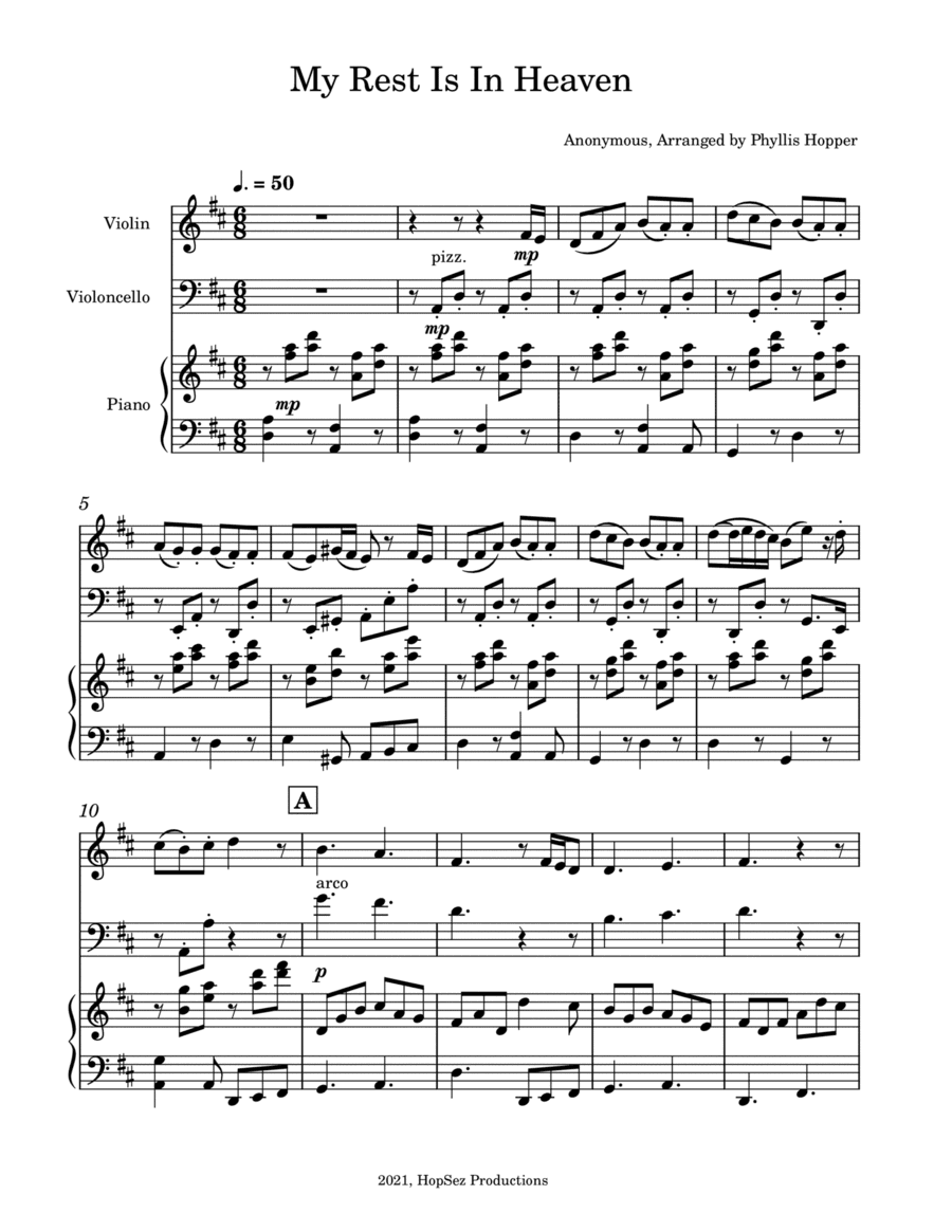 My Rest Is In Heaven - violin cello piano (arr. Phyllis Hopper)