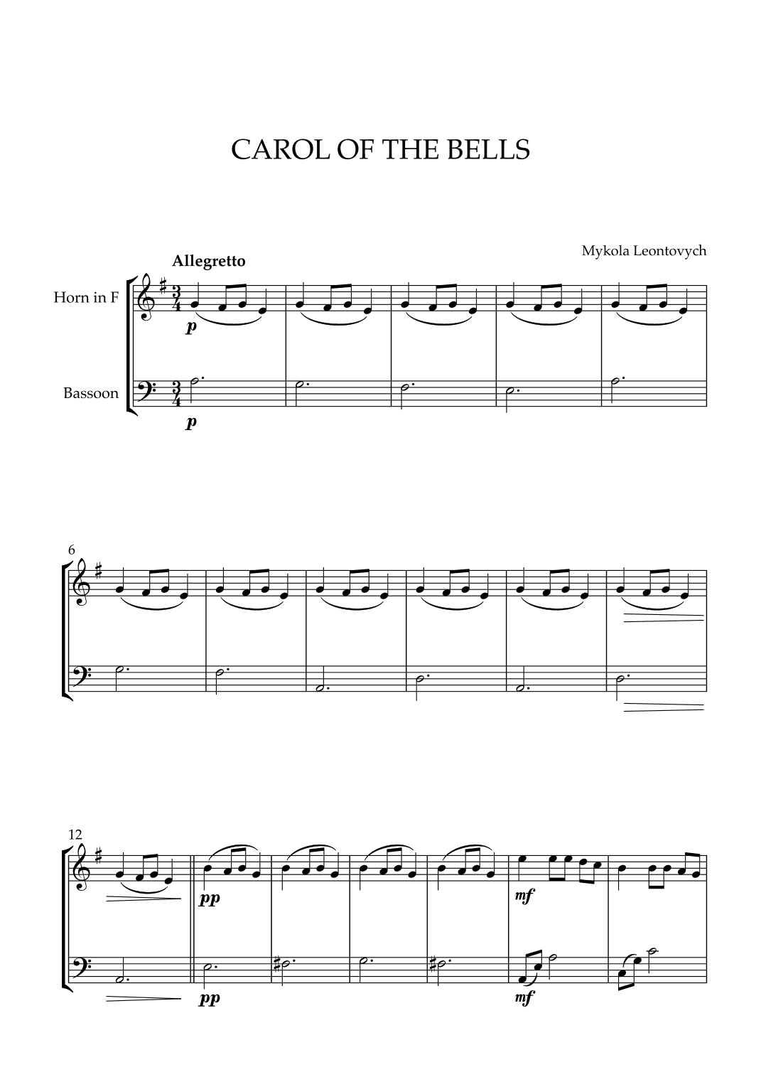 Mykola Leontovych - Carol of The Bells (for French Horn and Bassoon) (arr. Cadenza Editions)