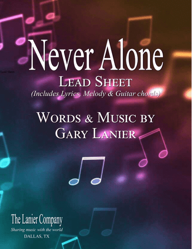 Voice Duet Voice - Level 3 - Digital Download SKU: A0.617897 By Gary and Leah Lanier. By Gary Lanier. Arranged by Gary Lanier. Christian,Contemporary,Praise & Worship,Sacred,Spiritual. 2 pages. The Lanier Company #6704841. Published by The Lanier Company (A0.617897). NEVER ALONE, written by world renowned Composer/Arranger, Gary Lanier, is an encouraging worship song that will have your congregation thanking God for never leaving them alone. A LISTENING MP3 of Live Worship with Worship Leaders, Gary & Leah Lanier is available listed as: NEVER ALONE, Live Worship with Worship Leaders, Gary & Leah Lanier (Listening MP3). This product was created by a member of ArrangeMe, Hal Leonard's global self-publishing community of independent composers, arrangers, and songwriters. ArrangeMe allows for the publication of unique arrangements of popular titles and original compositions from a variety of voices and backgrounds. The length, difficulty, and retail pricing are determined solely by the discretion of the person who arranged or composed it. About Digital Downloads Digital Downloads are downloadable sheet music files that can be viewed directly on your computer, tablet or mobile device. Once you download your digital sheet music, you can view and print it at home, school, or anywhere you want to make music, and you don’t have to be connected to the internet. Just purchase, download and play! PLEASE NOTE: Your Digital Download will have a watermark at the bottom of each page that will include your name, purchase date and number of copies purchased. You are only authorized to print the number of copies that you have purchased. You may not digitally distribute or print more copies than purchased for use (i.e., you may not print or digitally distribute individual copies to friends or students).