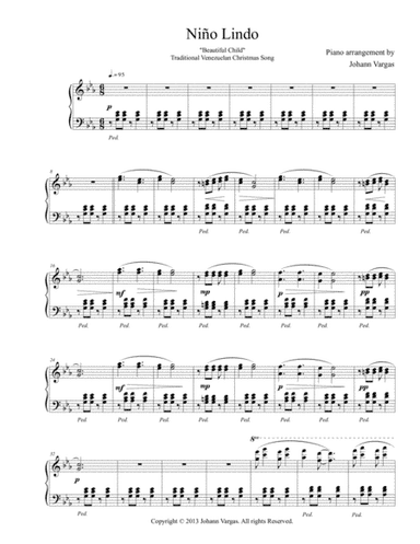 Piano Solo - Level 5 - Digital Download SKU: A0.957943 Composed by Venezuelan traditional. Arranged by Johann Vargas. Christmas,Latin. Score. 4 pages. Dekaal Publications #3396999. Published by Dekaal Publications (A0.957943). Piano arrangement of Venezuelan traditional Christmas song. This product was created by a member of ArrangeMe, Hal Leonard's global self-publishing community of independent composers, arrangers, and songwriters. ArrangeMe allows for the publication of unique arrangements of popular titles and original compositions from a variety of voices and backgrounds. The length, difficulty, and retail pricing are determined solely by the discretion of the person who arranged or composed it. About Digital Downloads Digital Downloads are downloadable sheet music files that can be viewed directly on your computer, tablet or mobile device. Once you download your digital sheet music, you can view and print it at home, school, or anywhere you want to make music, and you don’t have to be connected to the internet. Just purchase, download and play! PLEASE NOTE: Your Digital Download will have a watermark at the bottom of each page that will include your name, purchase date and number of copies purchased. You are only authorized to print the number of copies that you have purchased. You may not digitally distribute or print more copies than purchased for use (i.e., you may not print or digitally distribute individual copies to friends or students).