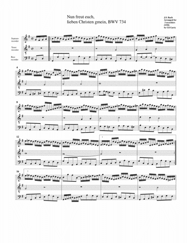 Digital Sheet Music for Nun freut euch, lieben Christen gmein BWV 734 by Johann Sebastian Bach scored for Organ Solo; id:330223