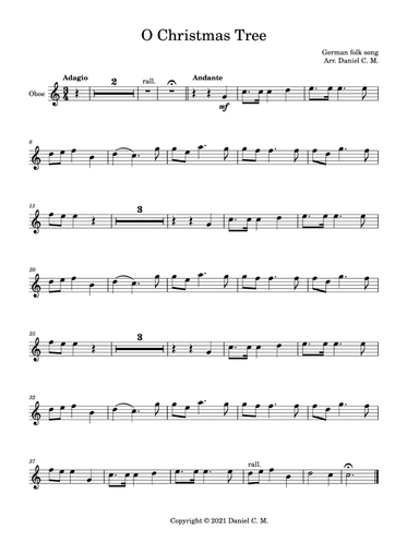 Oboe Solo - Level 1 - Digital Download SKU: A0.796093 Arranged by Christopher Esther. Christmas. Individual part. 1 pages. Christopher Esther #6119617. Published by Christopher Esther (A0.796093). This piece is part of a 12 song collection available for just $9.99 (or only $0.83 per song)! Find the full collection for your instrument by going to…https://sites.google.com/view/cpesther/sheetmusic/boughs-of-holly-or-https://www.sheetmusicplus.com/search?Ntt=Classic+Christmas+Songs+-+The+%22Boughs+of+Holly%22+SeriesYou can also search Sheet Music Plus for "Classic Christmas Songs - The Boughs of Holly Collection".All of these pieces are also completely compatible with any others in the series, so you can build your own instrumentation without worrying about whether the music will work together! This product was created by a member of ArrangeMe, Hal Leonard’s global self-publishing community of independent composers, arrangers, and songwriters. ArrangeMe allows for the publication of unique arrangements of both popular titles and original compositions from a wide variety of voices and backgrounds. About Digital Downloads Digital Downloads are downloadable sheet music files that can be viewed directly on your computer, tablet or mobile device. Once you download your digital sheet music, you can view and print it at home, school, or anywhere you want to make music, and you don’t have to be connected to the internet. Just purchase, download and play! PLEASE NOTE: Your Digital Download will have a watermark at the bottom of each page that will include your name, purchase date and number of copies purchased. You are only authorized to print the number of copies that you have purchased. You may not digitally distribute or print more copies than purchased for use (i.e., you may not print or digitally distribute individual copies to friends or students).