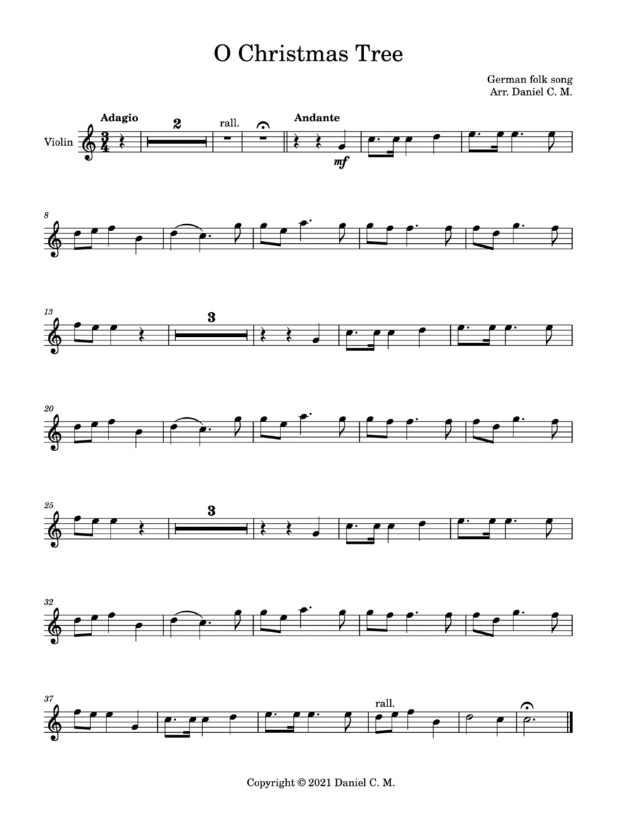 O Christmas Tree for violin and piano (easy) (arr. Daniel C. M.)