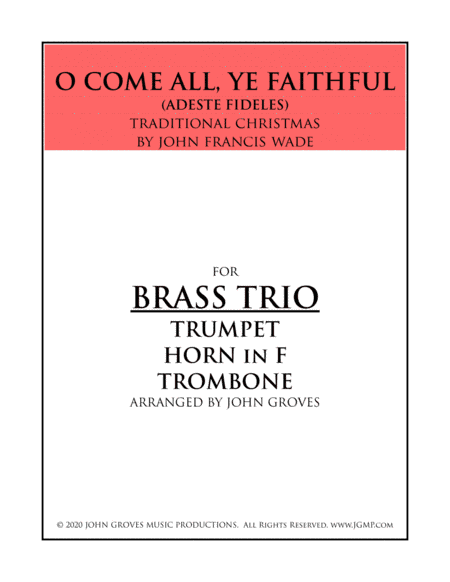 O Come, All Ye Faithful - Trumpet, Horn, Trombone (Brass Trio) (arr. John Groves)