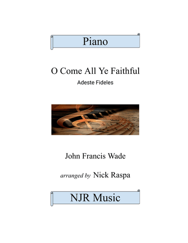 Piano Solo - Level 3 - Digital Download SKU: A0.754514 Composed by John Francis Wade. Arranged by Nick Raspa. Christmas,Holiday,Religious,Sacred. Score. 8 pages. NJR Music #6013257. Published by NJR Music (A0.754514). This arrangement of "O Come All Ye Faithful" (Adeste Fideles) begins in the key of G major and incorporates some new harmonies which freshen it up. The piece is then repeated in the minor and incorporates more ornamentation giving it more of a Baroque feel. Listen to the entire arrangemnt on YouTube. ASCAP. This product was created by a member of ArrangeMe, Hal Leonard’s global self-publishing community of independent composers, arrangers, and songwriters. ArrangeMe allows for the publication of unique arrangements of both popular titles and original compositions from a wide variety of voices and backgrounds. About Digital Downloads Digital Downloads are downloadable sheet music files that can be viewed directly on your computer, tablet or mobile device. Once you download your digital sheet music, you can view and print it at home, school, or anywhere you want to make music, and you don’t have to be connected to the internet. Just purchase, download and play! PLEASE NOTE: Your Digital Download will have a watermark at the bottom of each page that will include your name, purchase date and number of copies purchased. You are only authorized to print the number of copies that you have purchased. You may not digitally distribute or print more copies than purchased for use (i.e., you may not print or digitally distribute individual copies to friends or students).
