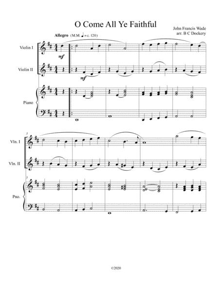 O Come All Ye Faithful (violin duet) with optional piano accompaniment (arr. B C Dockery)