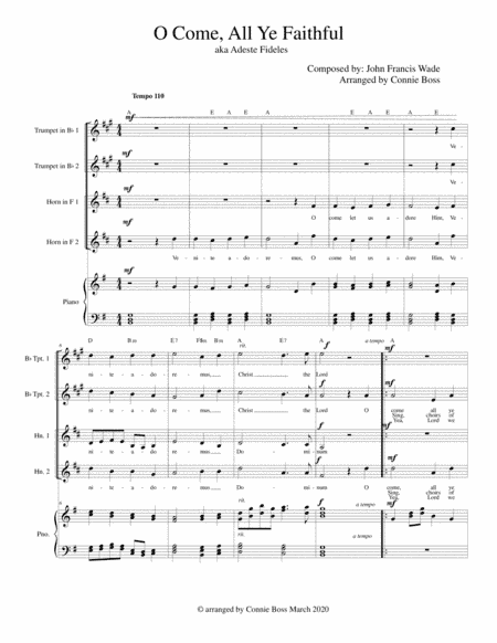O Come all Ye Faithful/Adeste Fideles - Brass ensemble & Piano (arr. Connie Boss)