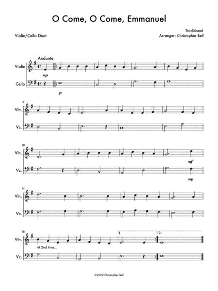 O Come, O Come, Emmanuel - Easy Violin/Cello Duet (arr. Christopher Bell)