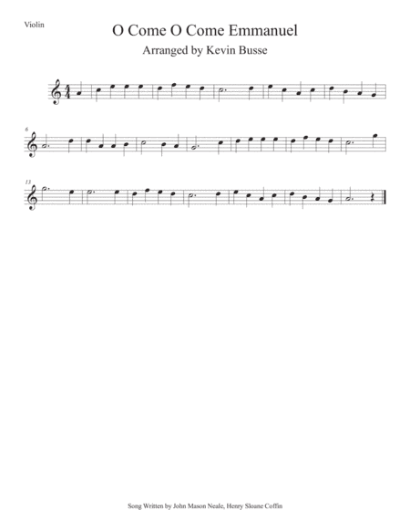 O Come O Come Emmanuel (Easy key of C) Violin (arr. Kevin Busse)
