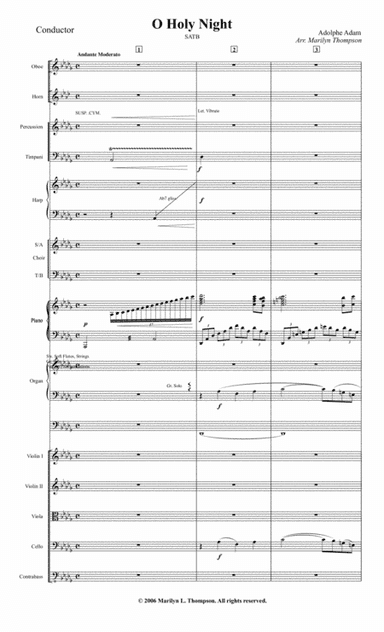 Choral Choir (SATB) - Digital Download SKU: A0.809483 Composed by Adolphe-Charles Adam. Arranged by Marilyn Thompson. Christian,Christmas,Sacred. Octavo. 23 pages. Marilyn Thompson #6018757. Published by Marilyn Thompson (A0.809483). A dynamic choral setting of this long-standing Christmas classic seasoned with a touch of "Far-Eastern" flavor. Parts ( including organ) available on other posts. An octavo version with piano accompaniment is also available.  For additional information contact [email protected]  ASCAP. This product was created by a member of ArrangeMe, Hal Leonard’s global self-publishing community of independent composers, arrangers, and songwriters. ArrangeMe allows for the publication of unique arrangements of both popular titles and original compositions from a wide variety of voices and backgrounds. About Digital Downloads Digital Downloads are downloadable sheet music files that can be viewed directly on your computer, tablet or mobile device. Once you download your digital sheet music, you can view and print it at home, school, or anywhere you want to make music, and you don’t have to be connected to the internet. Just purchase, download and play! PLEASE NOTE: Your Digital Download will have a watermark at the bottom of each page that will include your name, purchase date and number of copies purchased. You are only authorized to print the number of copies that you have purchased. You may not digitally distribute or print more copies than purchased for use (i.e., you may not print or digitally distribute individual copies to friends or students).